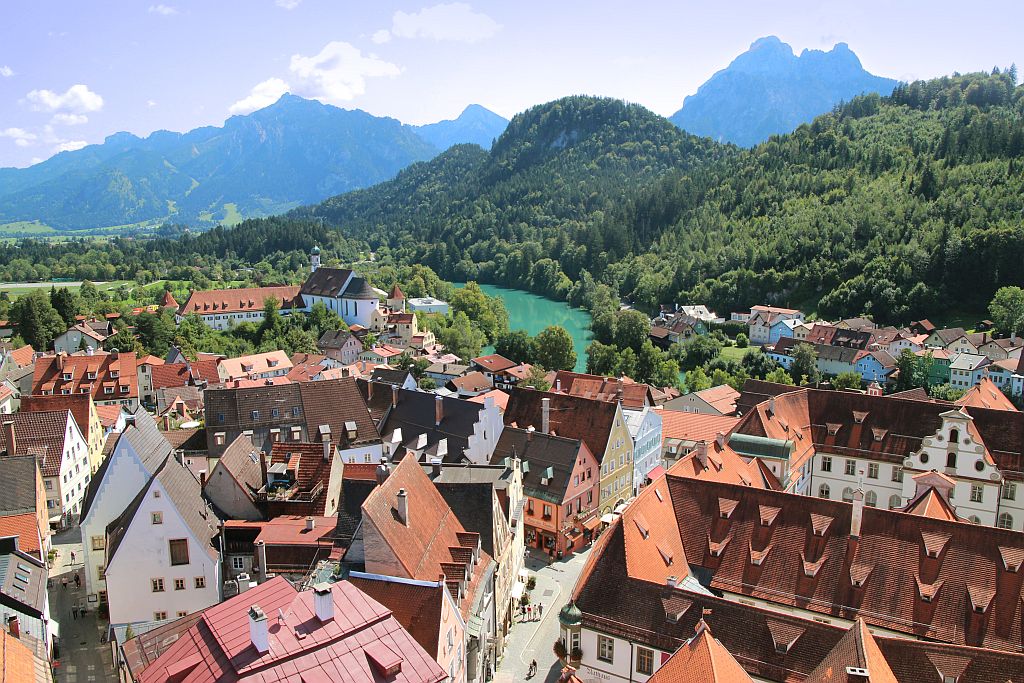 Pittoreske Dörfer erwarten Sie genauso wie die historische Altstadt von Füssen mit dem Hohen Schloss, dem Kloster St. Mang, dem Baumgarten hoch überm Lech, und den verwinkelten Gassen mit Geschäften, Cafés und Restaurants.