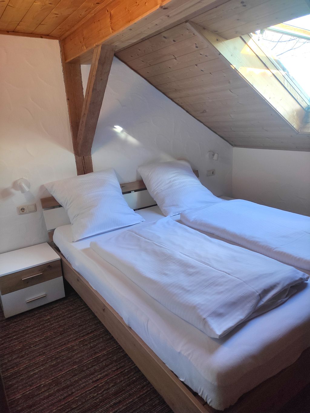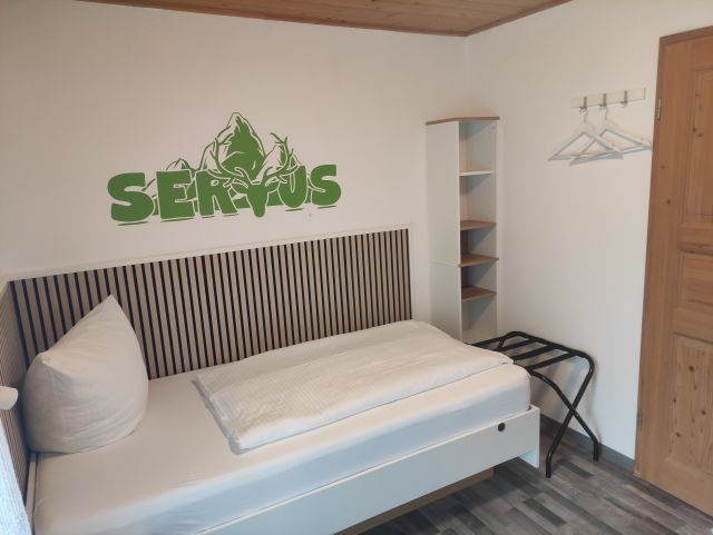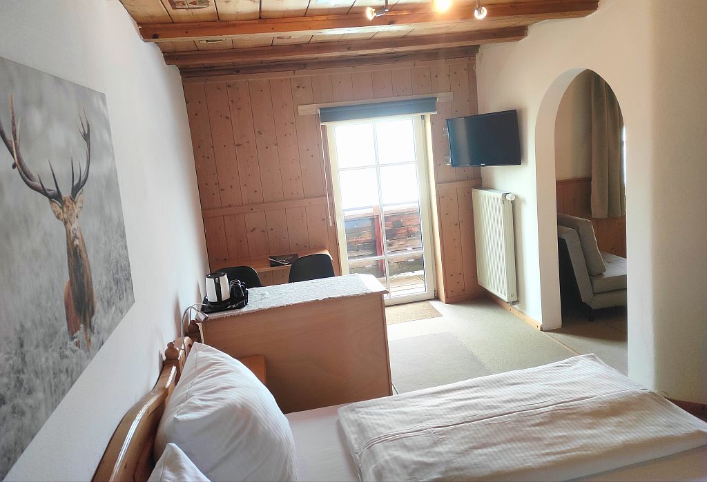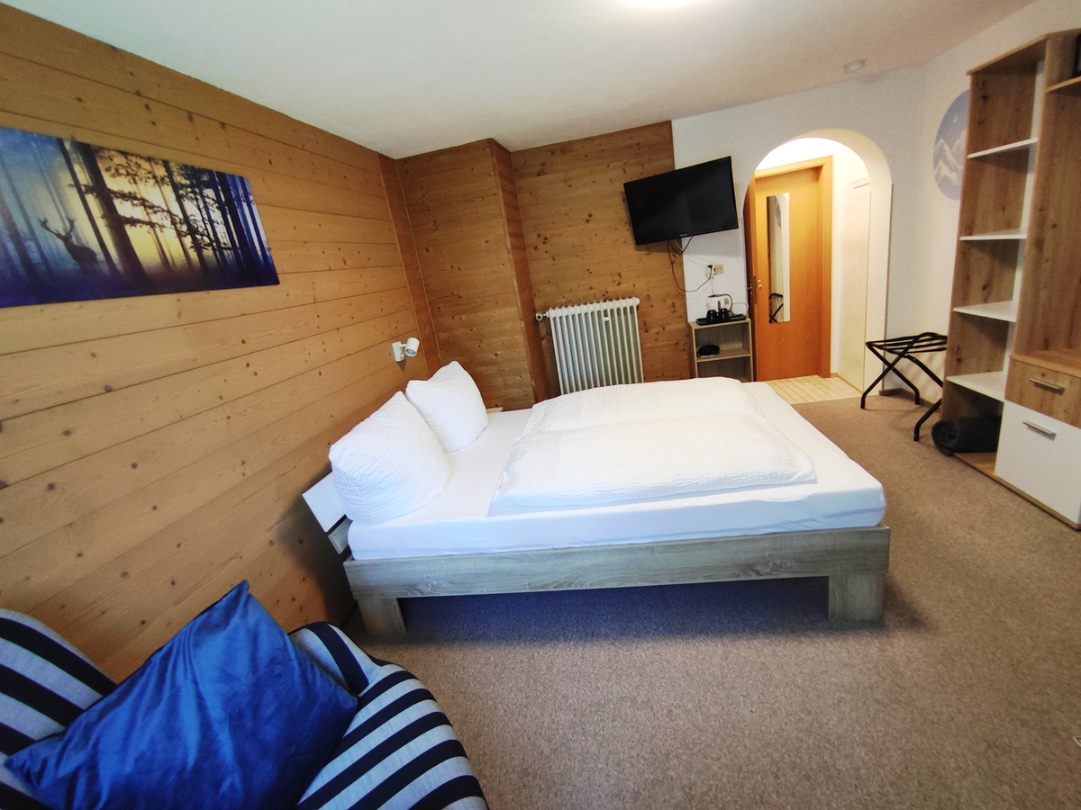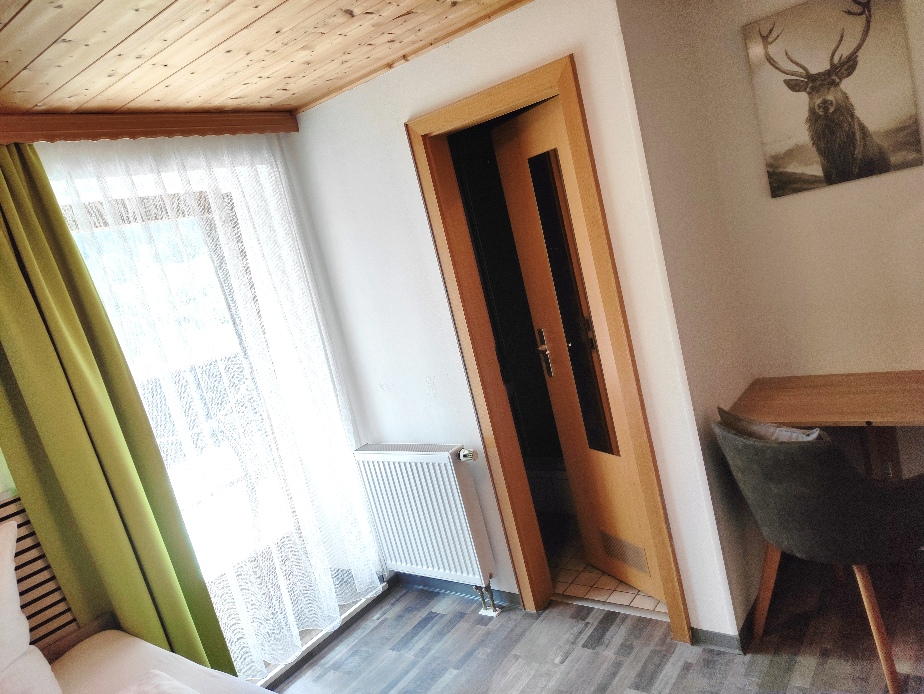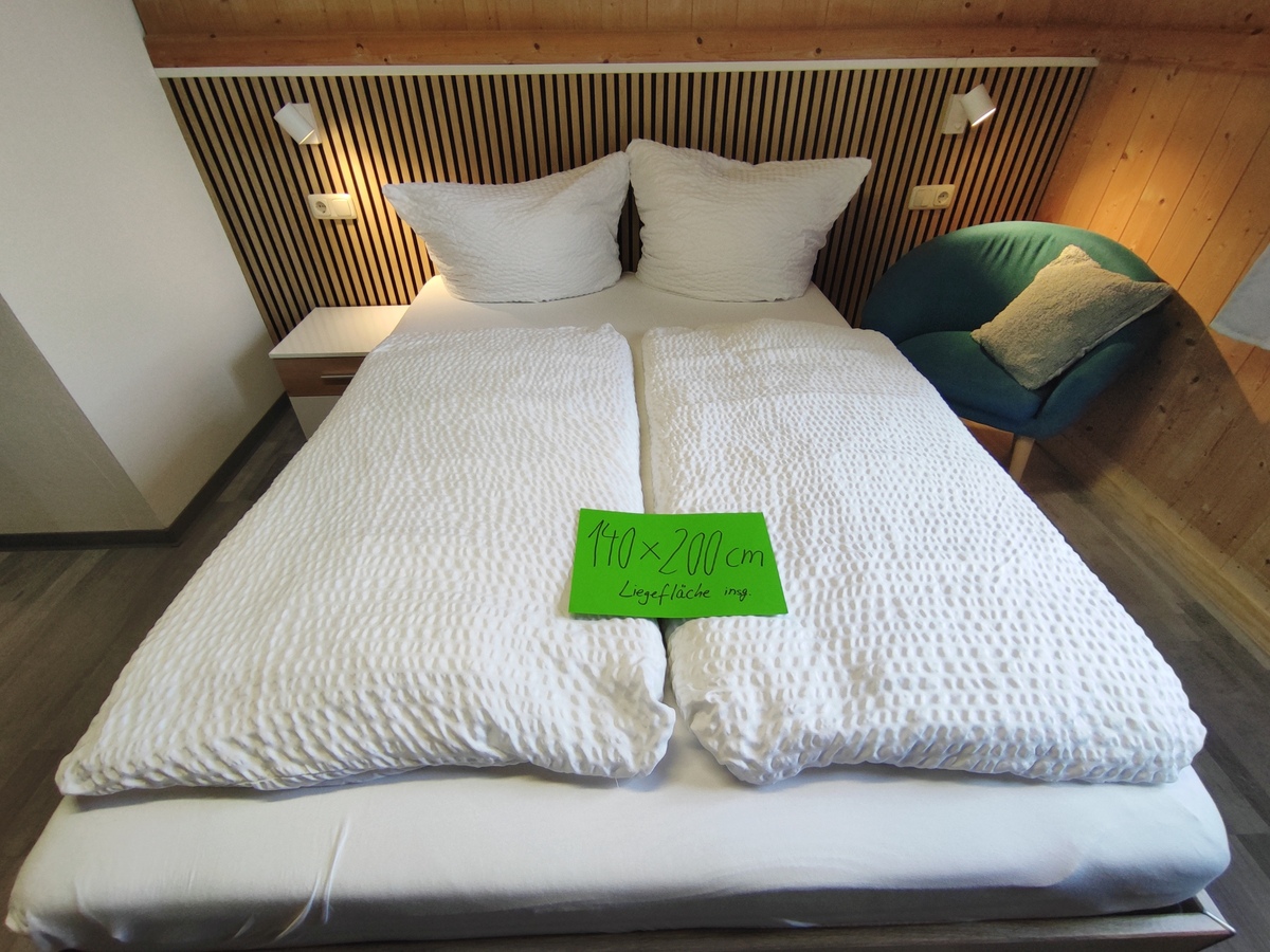 Die neu möblierten, freundlichen Doppelzimmer mit Südbalkon und Blick auf das Ammergebirge bzw den Falkensteinkamm verfügen jeweils über ein 180x200-cm-Bett mit offenem Fußende, einen Sitzbereich und ein kleines Badezimmer mit DU/WC.