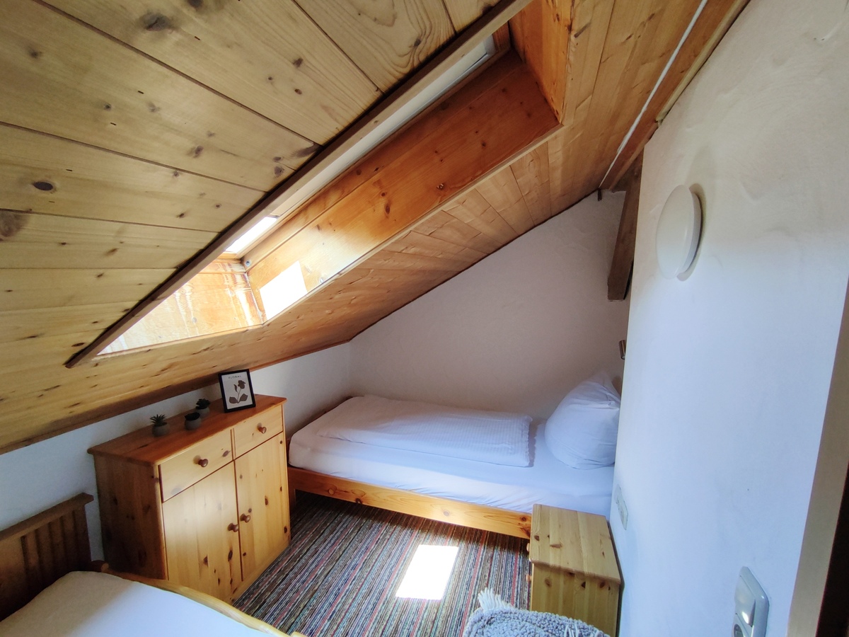 Unsere teilweise neu möblierte, gemütliche FeWo im Landhausstil befindet sich im 2. Stockwerk unterm Dach, und ist für 2-4 Personen geeignet.