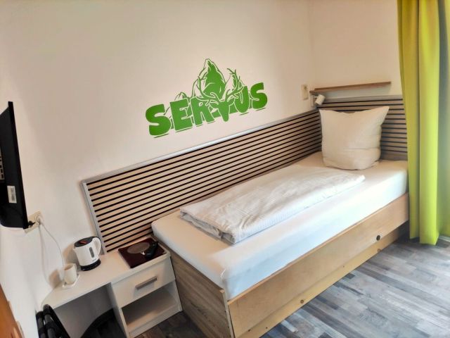 Unsere neu gestalteten, hellen Einzelzimmer verfügen jeweils über ein 100x200-cm-Bett mit offenem Fußende, einen Sitzbereich, ein kleines Badezimmer sowie einen großzügigen Balkon mit Bergblick.